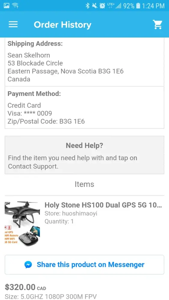 Someone charged 231.00 for a phone which is pending on my account. I cancelled my credit card this morning. It was being shipped somewheere I never heard of. I am not safe with my credit card on wish anymore. Please donot ship this item. I have contacted my bank and have deactivated my acct. I am very disappointed in wish for not viewing the shipping information before trying to use my card