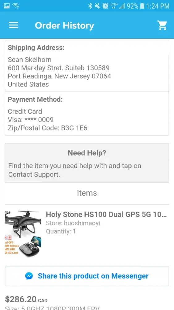 My account was hacked by someone on New Jersey they ordered a smartwatch from my account and changed the shipping address to 600 market, st. Suite 1312260 port reading woolbridge, New Jersey, United States, 07064. I looked up the address and it's a warehouse company. They've been hacking accounts from eBay and wish and using people's info to purchase item...