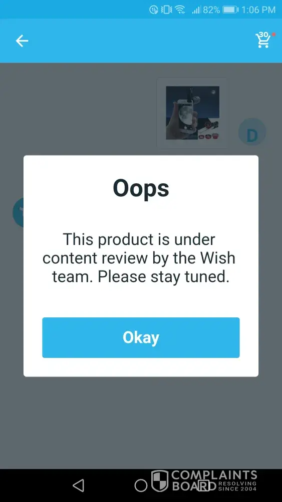 My issue with Wish is getting notified that your order has shipped when it hasn't. My order appears to be in limbo. I tried to track it and got a message saying "Oops this product is under review by the Wish team..." All customer support says is "Since the item is still in transit, we recommend to wait for it to arrive on or before the receiving by date". The item is not in transit when the last location is "NoneNone". I can't even contact the seller to find out what is happening with the item I paid for! I am now trying to cancel the order since I know I'm not going to receive the item. Seriously Wish, how long does it take to review a product? Maybe you should review the products before they are posted and before you take your customer's money!