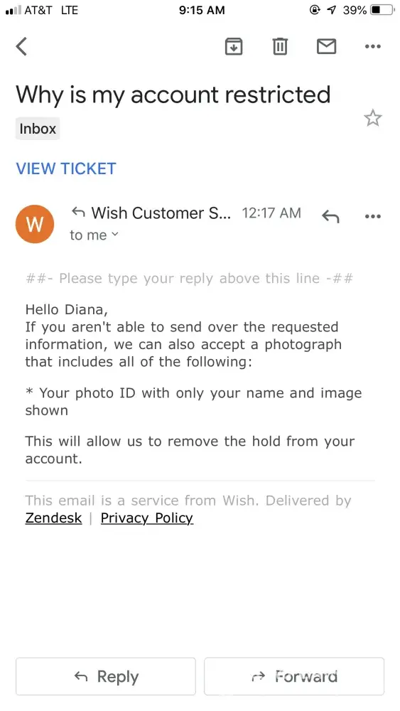 I've ordered a few payments on wish and once I paid for them it's now asking for Id a bank statement or drivers licence I just want my orders .