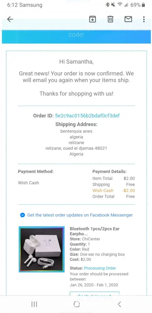 I had a time without use my wish account, and when I try to order something it ask for a payment method, I use the same card that the last time... I didn’t realize the mistake until I check the order... they refunded it automatically 3 days later... I check the option of Same as shipping address... and this appear.