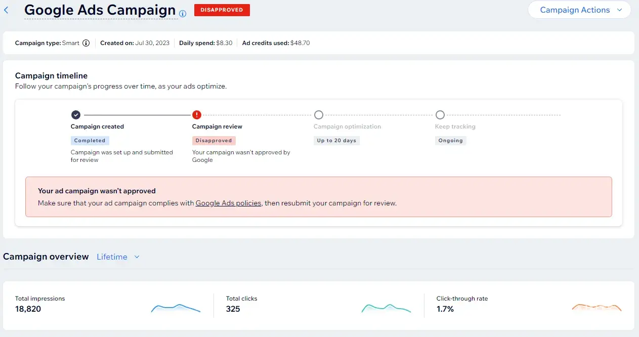 I use to love Wix because I thought the interface was very user friendly. I had built two sites in my time with Wix- however, this recent foray will be my last. I initially agreed to pay $300 for a month of Google ads for my site. For the first few days, it was great. I was getting a ton of traffic to my site, but after a week, Google cancelled my Ad and...