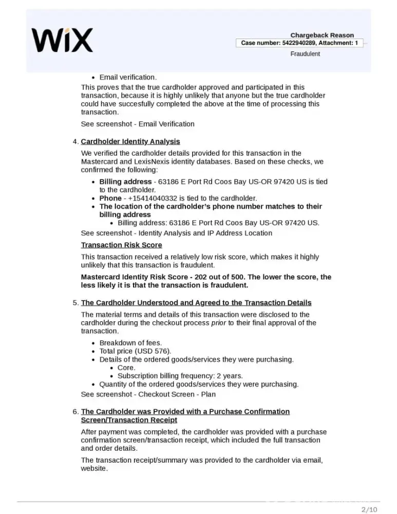 WIX billed my CREDIT ONE BANK (COB) credit card for $576 in March 2025. The charge was for a company I had worked for and have parted ways since June 2023. When I set the account up for my then employer, I selected “non-renew.†03/15/2025, I disputed the charge with CREDIT ONE BANK, Claim #250315000473C. I emailed COB a copy of my termination...