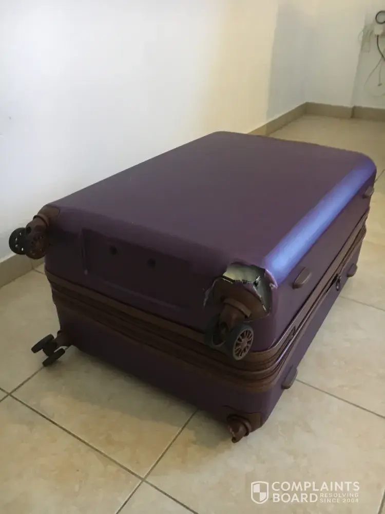 When I collected my luggage after the flight on 20 July from Budapest to London, Luton Airport, I realized that both of the wheels are broken. THe cover of one of the wheels was broken and lost and the cover of the other wheel was split and partly lost, the other part is still on the wheel.