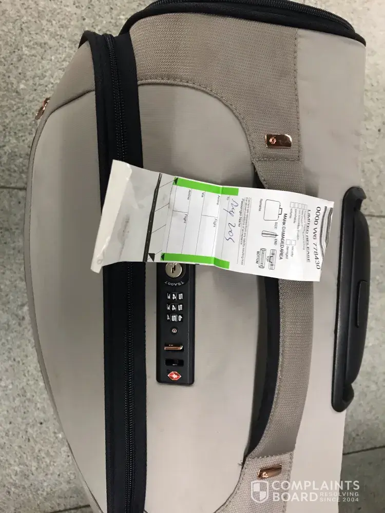 my complaint is related to damaged cabin luggage. Our flight with Wizzair W6 1442 from Rome to Warsaw on 23 October 2018 was delayed and even though I had only 1 cabin luggage within the parameters, I was asked to have it put in the bottom of the plane and was not allowed to take it with me on board. When I arrived late in Warsaw and the cabin luggage was delivered (planned arrival was at 18:00 and actual arrival at 18:30) and my luggage arrived at 18:45, I was already late for an official dinner but noticed that my luggage was not only scratched and dirty but also the lock was damaged and the zipper was damaged with missing parts for locking it. In a rush I took a couple of pictures. It's not only damaged now but it is also not possible to lock the luggage properly anymore due to missing parts. The brand of the luggage is expensive with rare particles (Samsonite). I ask to be compensate for this damage. I am travelling constantly and will not have time to have this repaired soon enough and there was no reason to have my small expensive luggage taken from me to check in in the first place. This damage was also clearly done by human force/manually as then the zipper was forcefully closed the other way without it's second counterpart. I have photos with place and time record available from the Warsaw Chopin airport as well and attaching them to this complaint. Thank you in advance for seriously considering my complaint as I never had this problem before and would appreciate some compensation considering the unpleasant necessity to have this repaired somewhere internationally with unforeseen travel, repair and handling costs.