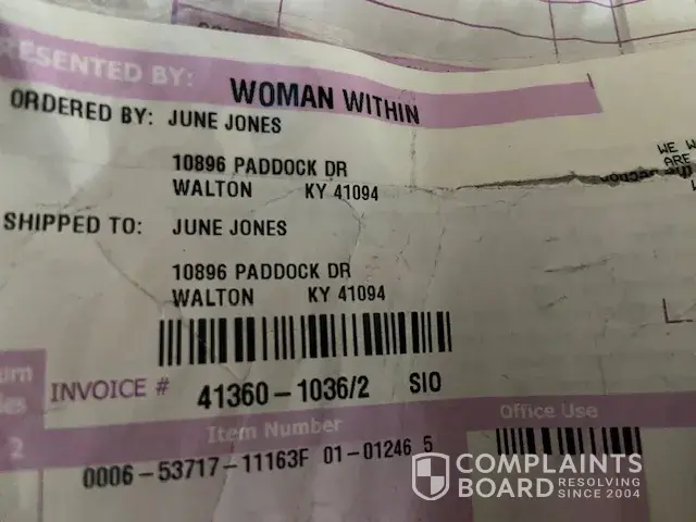I have had too many wrong orders sent to me. If this is not resolved in a timely manner, I will NEVER, NEVER order from Woman Within again!