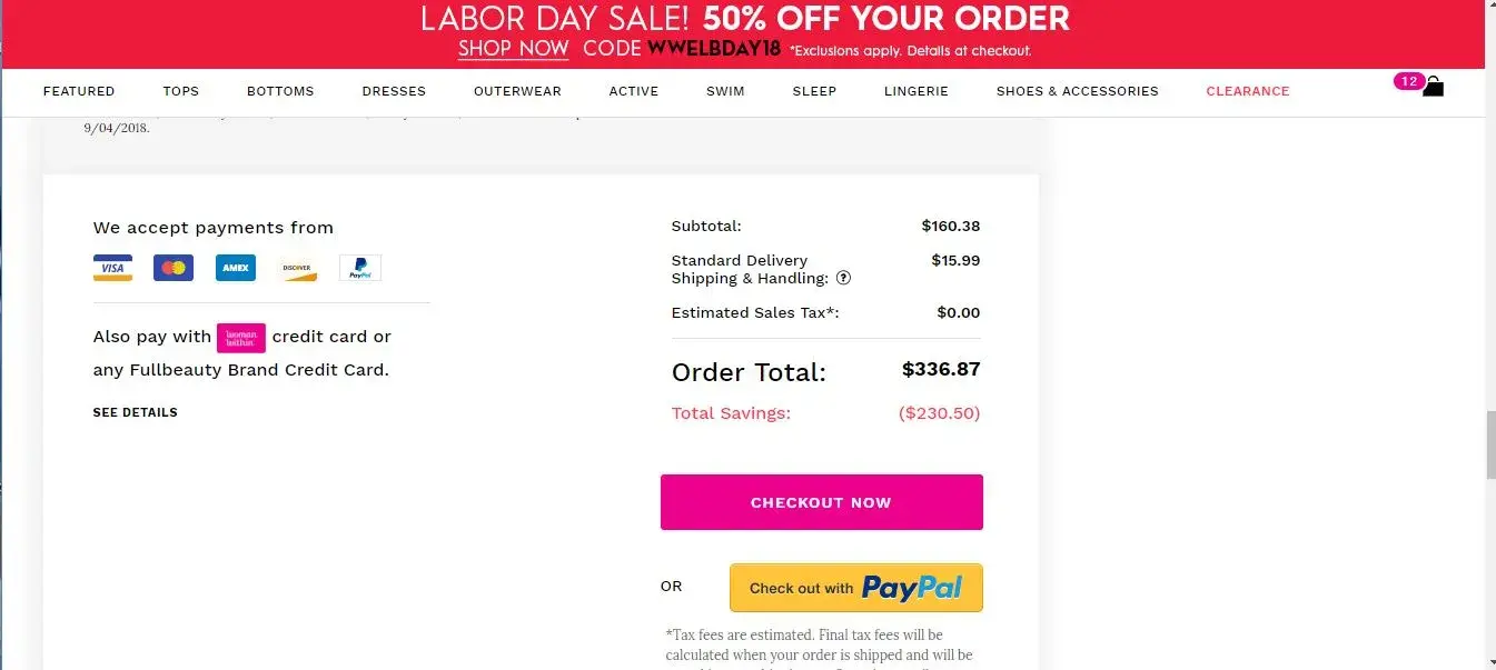 I tried to make a purchase on Labor Day when they were having a 50% off sale. For some reason, the subtotal had the correct 50% off subtotal but the total line did not. My total was $160.38 + 15.99 for S&H and then the grand total was $336.87. I went on my phone trying to figure out why it kept doing this, thinking it was my computer. But it did the same thing on each device. I took a snip-it of the subtotal/total box.