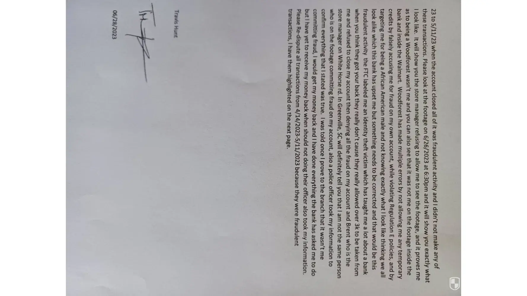-0 Fraudulent transactions took place on my account from 4/23-5/23, 3k worth of fraud every dispute and claim was denied, then told to step into the branch to see the footage to prove it was not me on 6/26/23 then told I would be refunded quickly after I proved it was not me. Brent the branch manager on white horse rd in Greenville, SC took my id and acknowledged it was not me on the footage refused to show me the footage, ask me to leave, and tells me I had no business in there, came home expecting to receive money owed to me from the fraud since they now have footage of me knew they would compare the footage against the person who actually done the fraud, was told to re-dispute it by supervisors. They blocked me from calling on 2 numbers, and hang up on me stating they will not assist me each time I call they tell me I need to step into the branch, and after telling me I need to step into a branch they refused to assist me 3 times, I proved it was not me. They have refused to honor their end of the bargain they have actually, shown this bank is not an honorable bank for falsely accusing me then they never refund my money after proving that was not me whom they accused of fraud, next they block 2 of my numbers from calling, then they flag agents to hang up on me whenever I call then they tell me to go back inside a branch that refuses to assist me as if they are trying to send me on a suicide mission to get assassinated, attempting to send me inside to branch for the 4th time after they have refused to assist me, making me out to be the bad guy when Woodforest are the bad guys, from the agents hanging up on me, not refunding all the fraud in my account then sending me on a dummy mission to get assassinated which the media would say the worst but in reality, its Woodforest will treat a customer like friends as money deposited but as money is withdrawn or if fraud is on their account you are their enemy, and they will treat you like a enemy don't choose this bank
