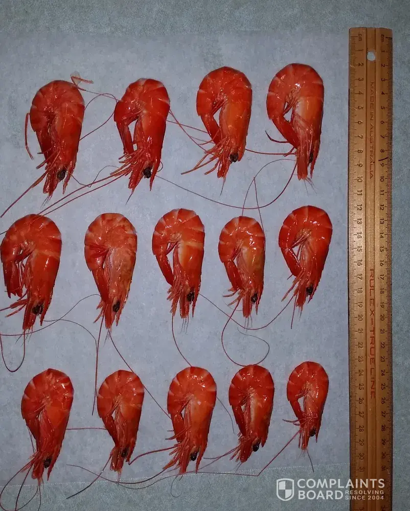 4. We would like our complaint addressed by the reimbursement of the difference between what we paid for and what we really received in weight measure for the contents of the plastic tub. It seems that had we have bought them from the display case, there would have been a better outcome for the pricing and we think prawn size.