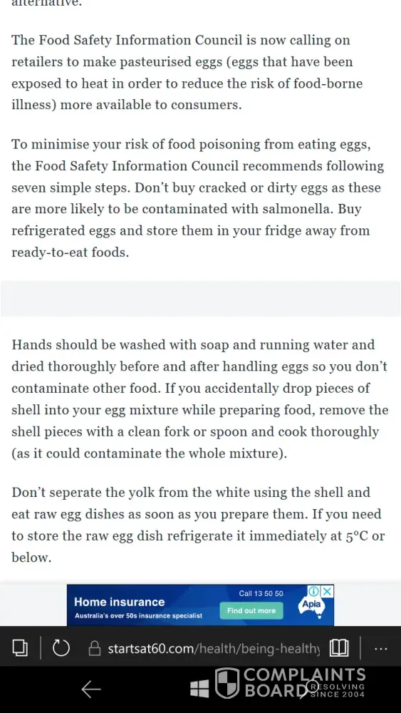 Read full complaintnon-safe storage of eggs.