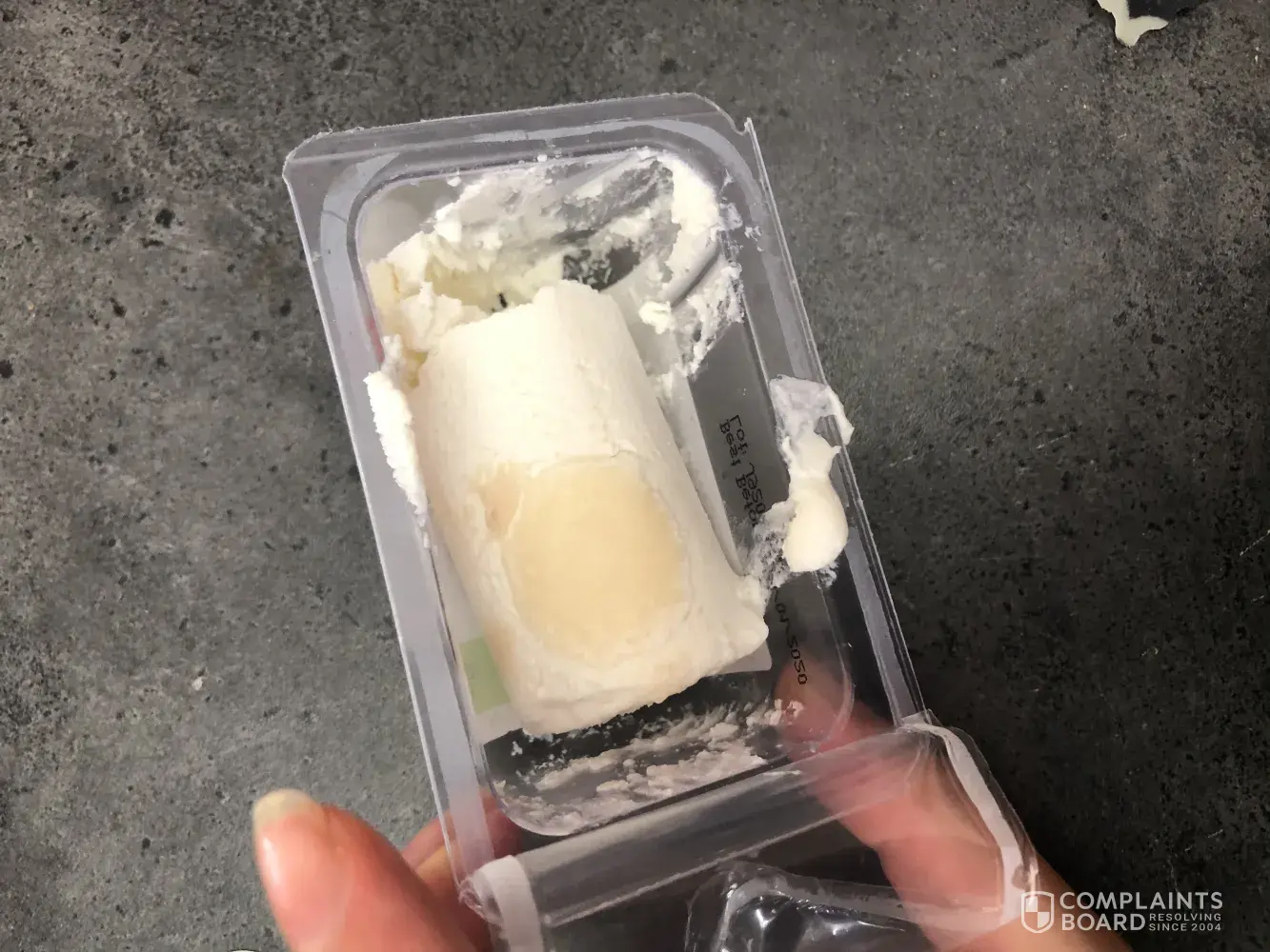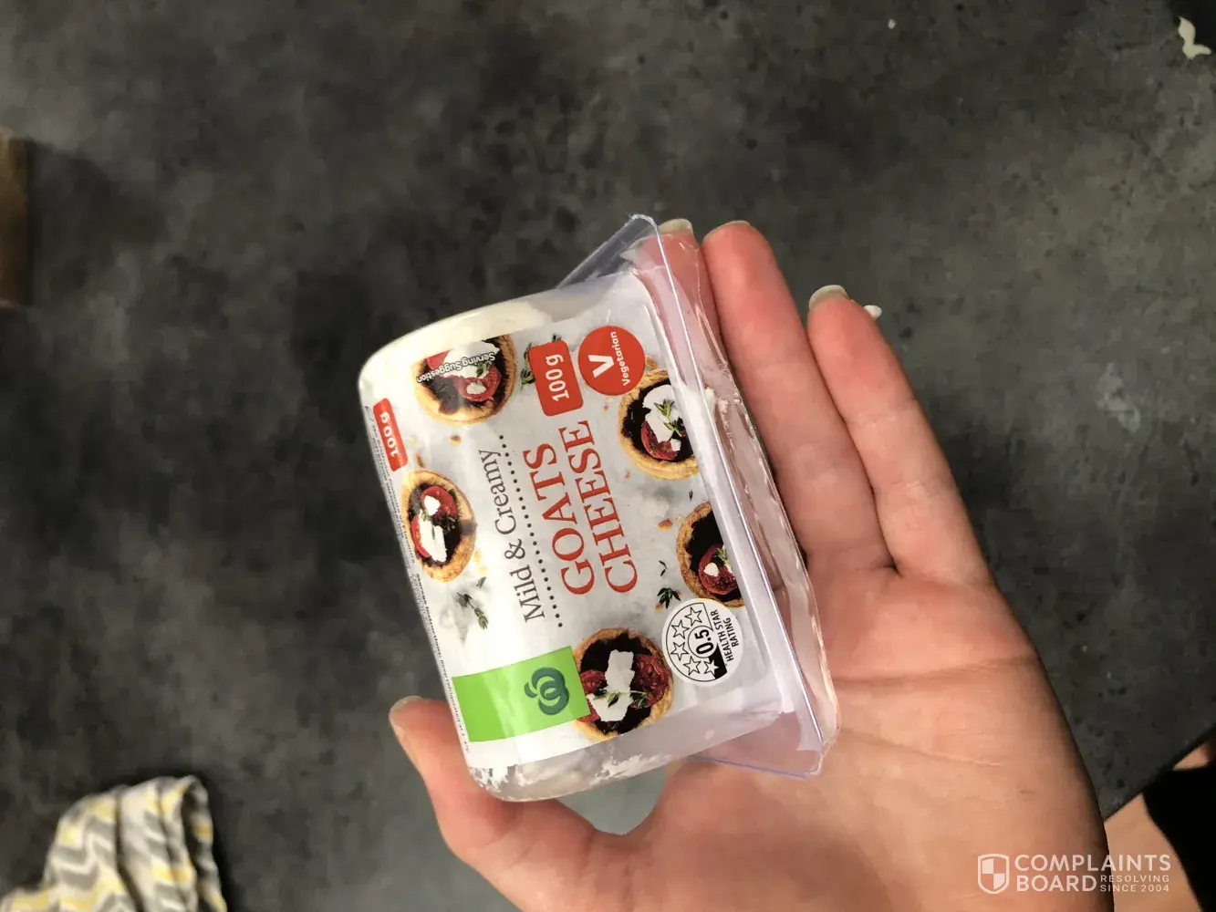 I purchased a goats cheese from Woolworths Gungahlin on the 2 Nov 2019 and have opened it today (3 Nov) and noticed it tasted off. I found what is pictured below which is not what goats cheese should look like. I have already consumed some of it in an omelet and at least like a refund for this item and this is not the quality I am used to receiving with Woolworths.