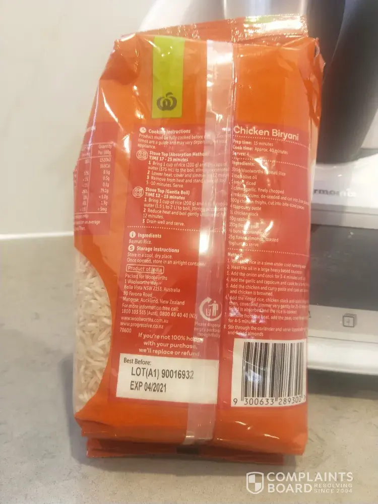 I am very happy with Woolworths and will continue to shop there I just thought I would make this known.