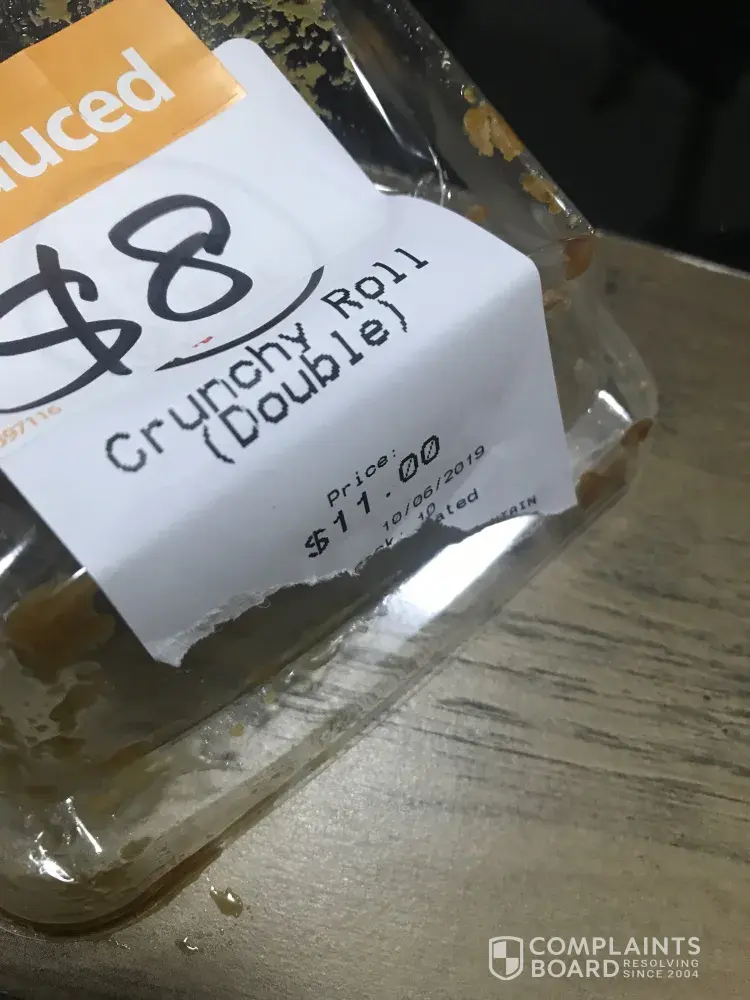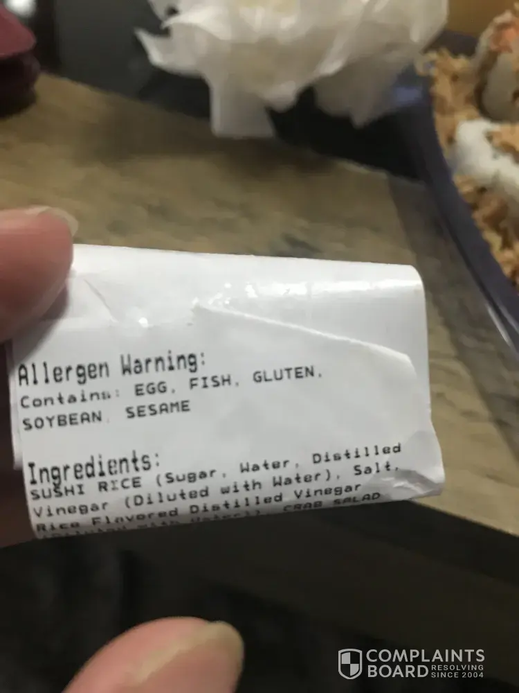 Although, the allergens were labelled in small text underneath- my partner was misled by the label "Crunchy Roll" in big writing. Considering the amount of fish that was in the sushi roll, the sushi should reflect this and be a "Crunchy Fish Roll". I am extremely unimpressed by this misadventure.