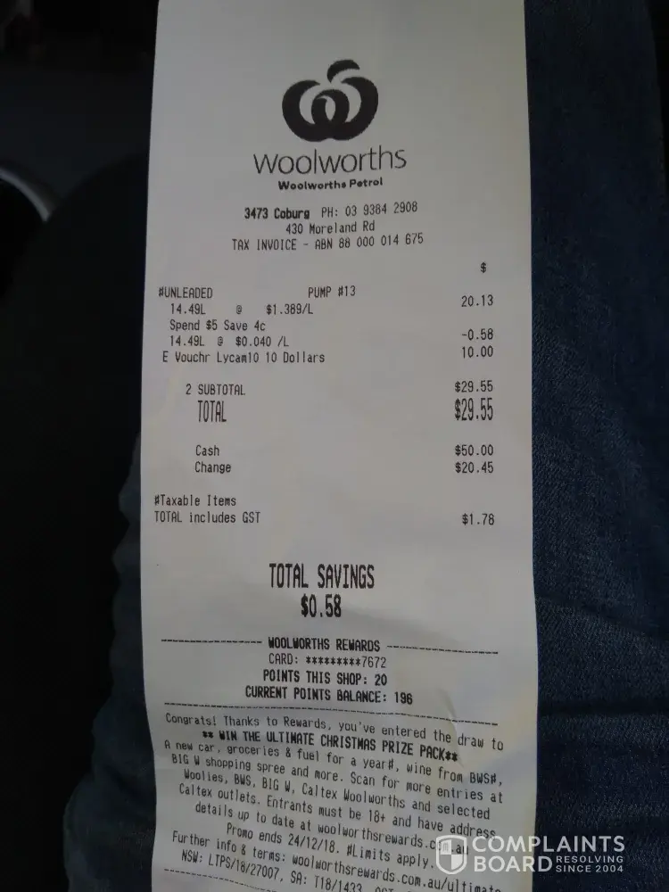 I filled 91 upl fuel at woolworths petrol, 430 moreland rd. Site id 3473 coburg. Ph [protected].