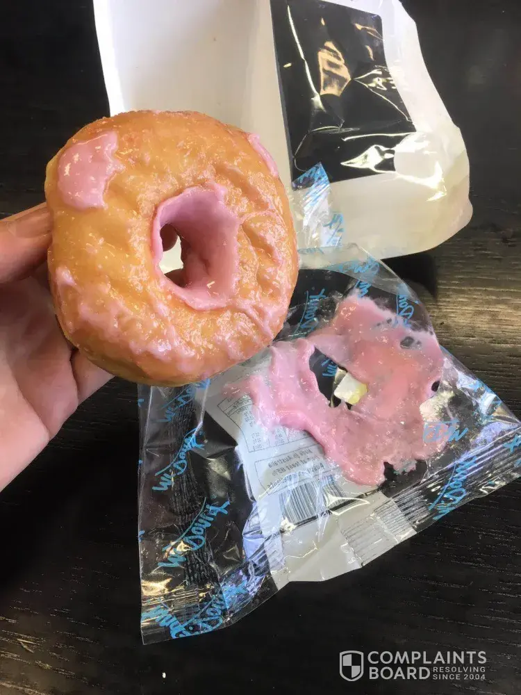 Against my moral compass, I bought one final donut the other day, justifying it to myself as being the last one. I felt instant regret, as when I pulled the plastic off the donut, it pulled off all of the icing (see photo attached). So not only is it (a) horrible for the environment and (b) more expensive and less attractive for customers, but also (c) it actually ruins the product. I will not be purchasing any more.