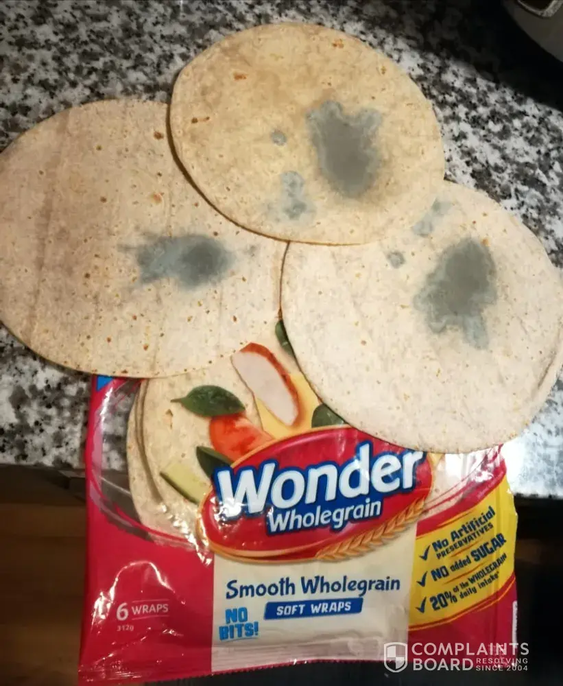 Today I bought 2 packets of wraps from St George's street, Perth 6000. I found the complete wraps of to be rotten and thick layer of green fungus path over it.