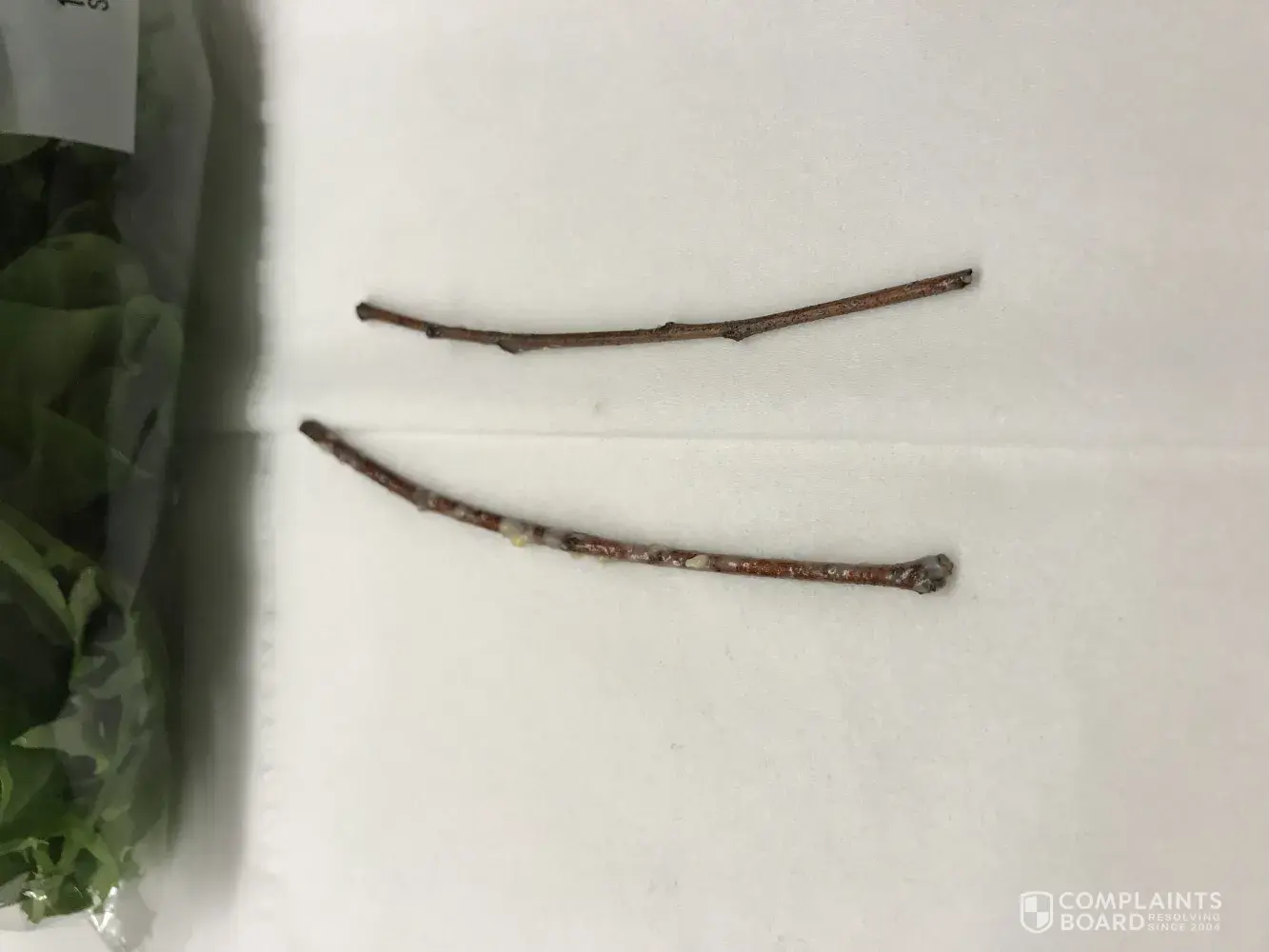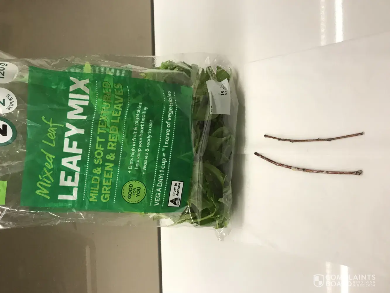 The other day whilst preparing my salad, I used the Mixed Leaf, Leafy Mix (120 g) and found two (2) twigs, approx 7 cm long each in this packet.