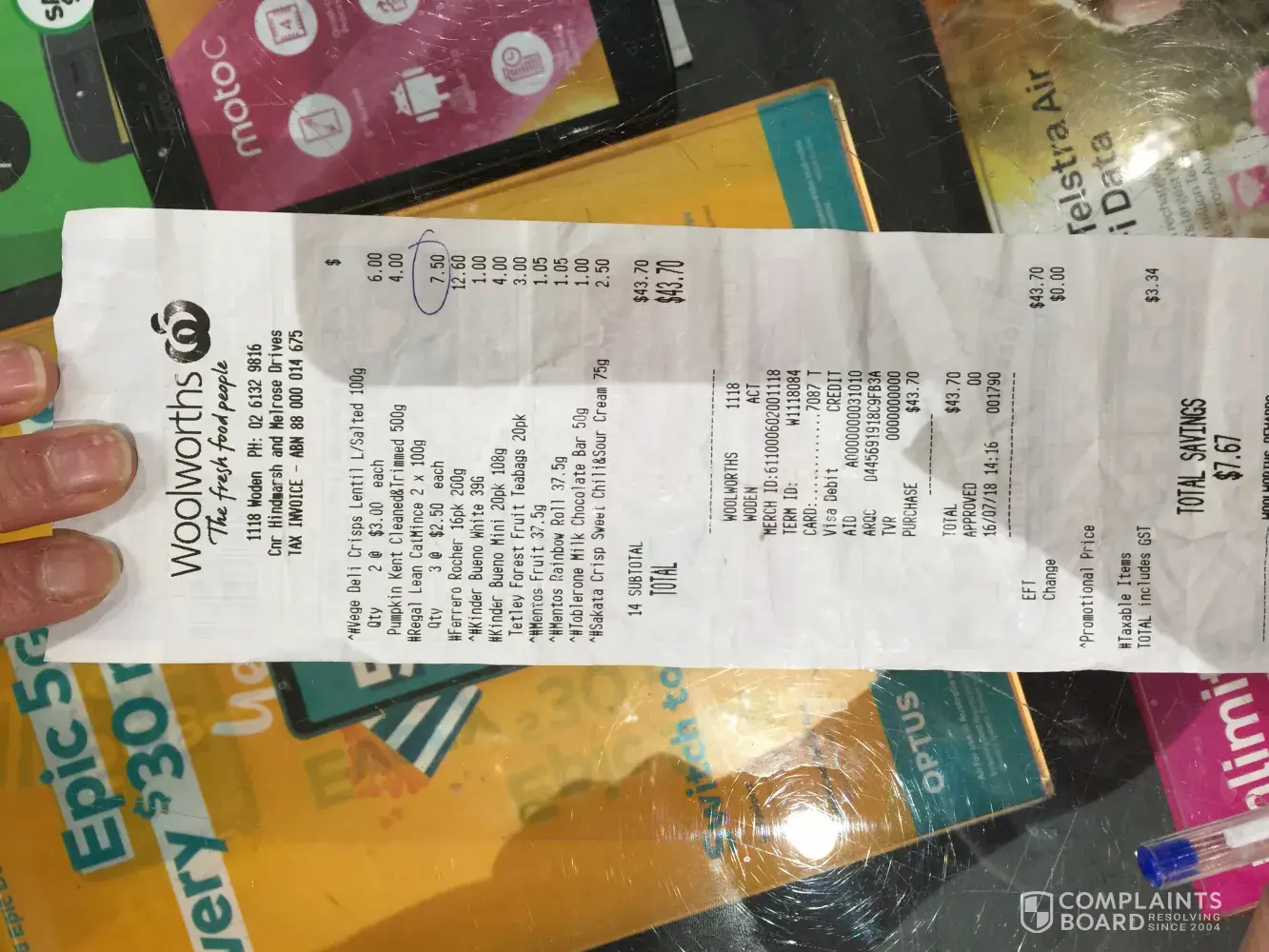Ok so I go back to the counter and inform a Woolworths lady of their mistake, the lady asked to give her a couple of minutes to double check !