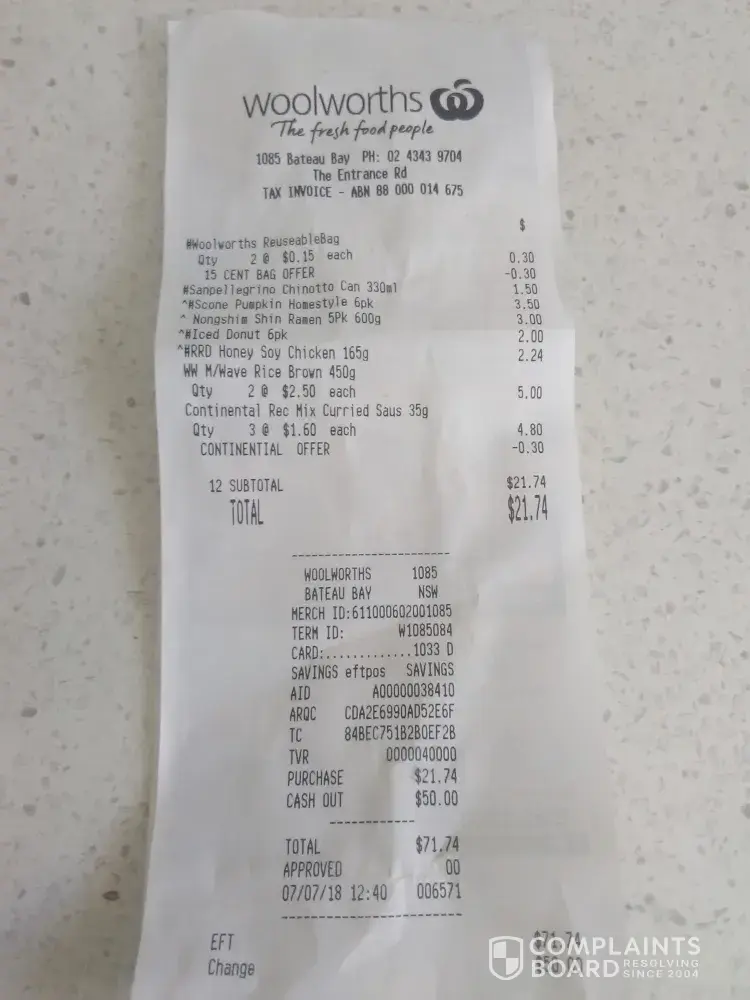 As this is not the first time that I am returning a product to Woolworth or other groceries and also Woolworth return policy is contrary to what this staff is arguing with me.