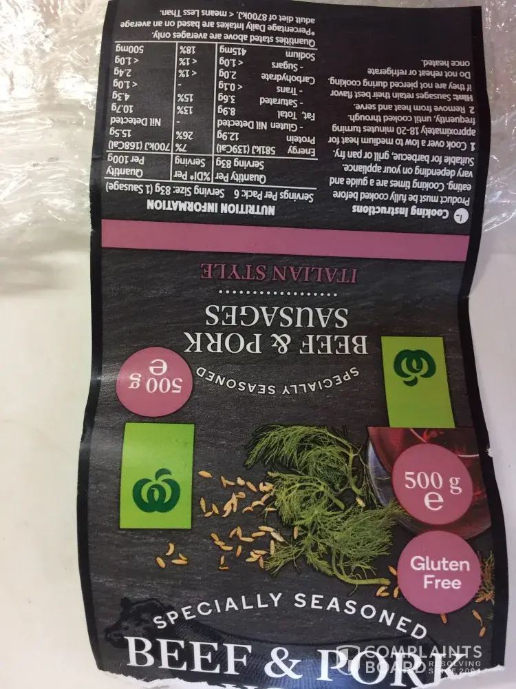woolworths beef and pork sausage