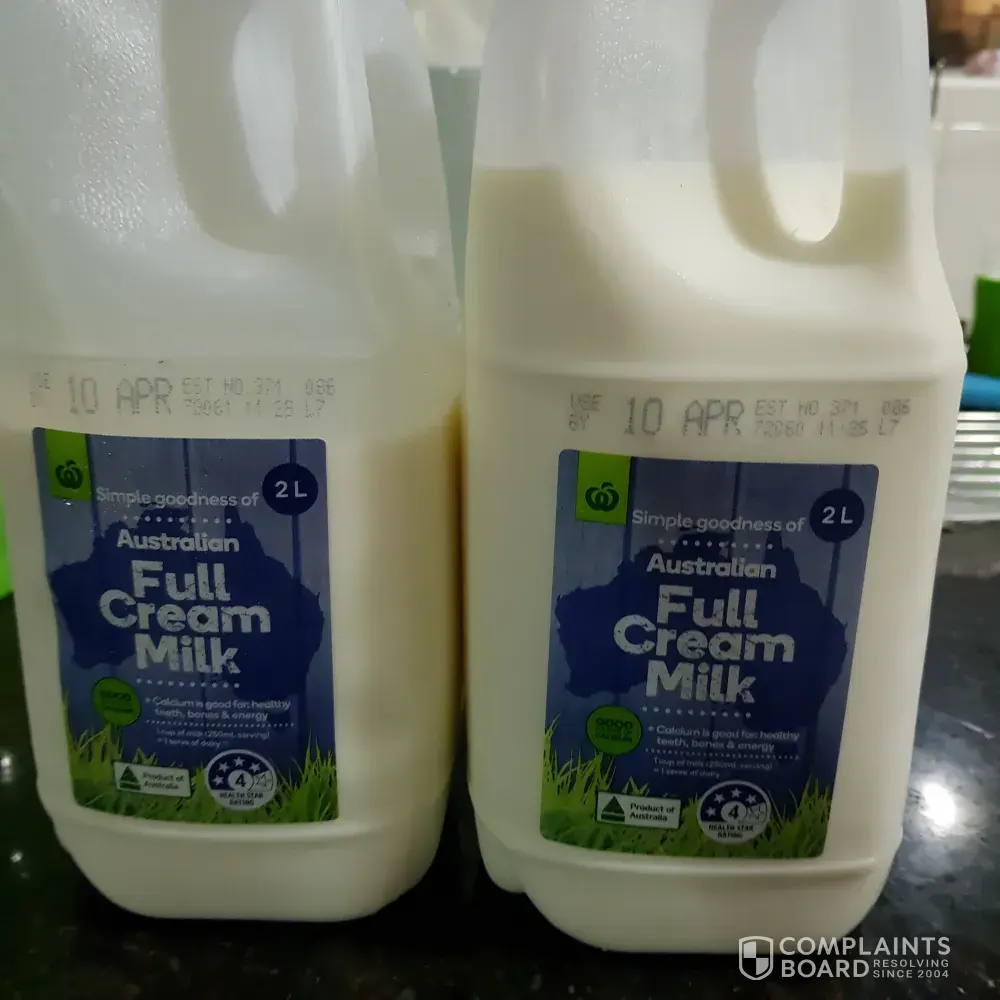 have had to throw out 2 containers of woolworths 2litre full cream milk in the past fortnight.