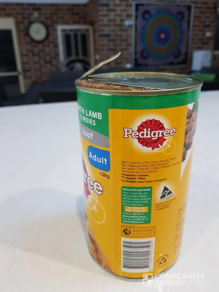 I wish to bring to light a situation for which a can of 1.2KG Pedigree Dog Food exploded on opening the tin. I have been in consultation with Pedigree direct however they have shifted the blame towards the retail store, and in this instance being Woolworths as it was from Woolworths that I purchased the product.