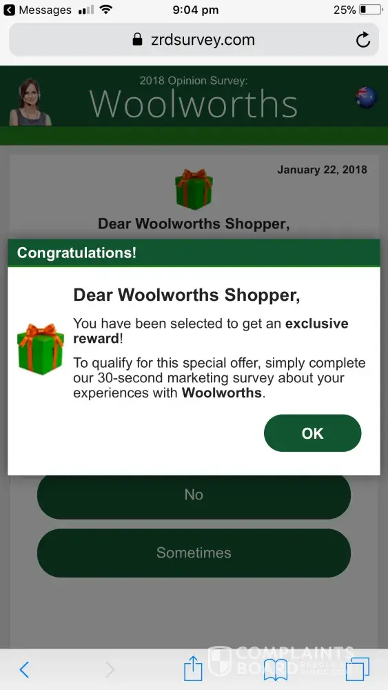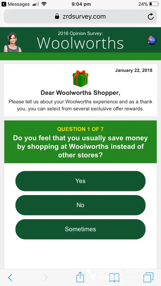 I clicked the link in the SMS and completed the Woolworths Survey and submitted this expecting to receive my $500AUD to spend at woolies and haven't received anything to date.