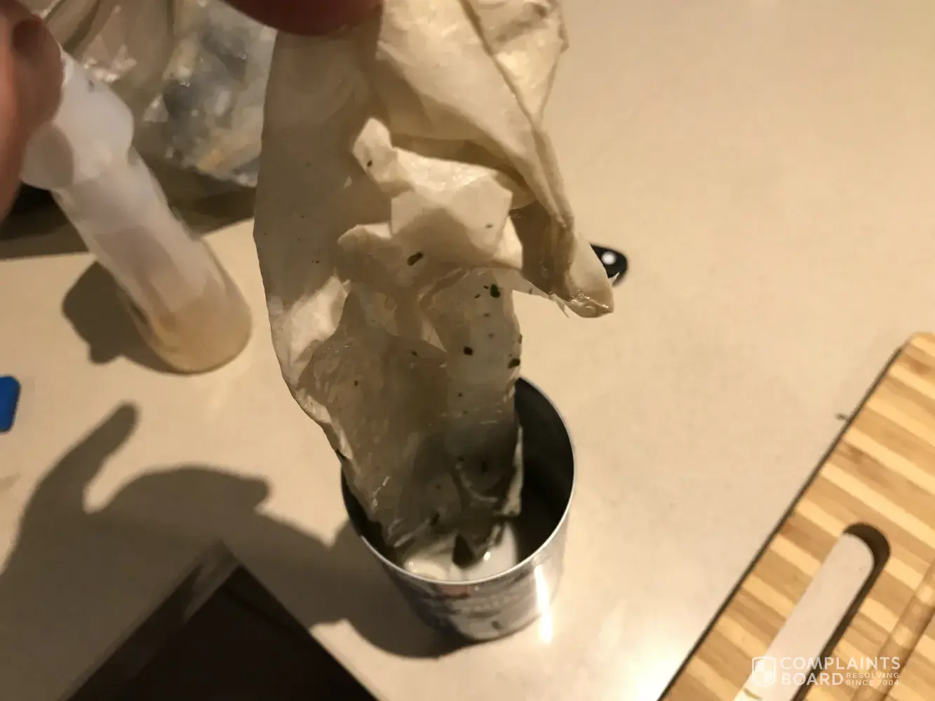 Bought 15 tins of the essential coconut milk, after opening the second tin I found paper in the tin, I will provide photos with batch number.