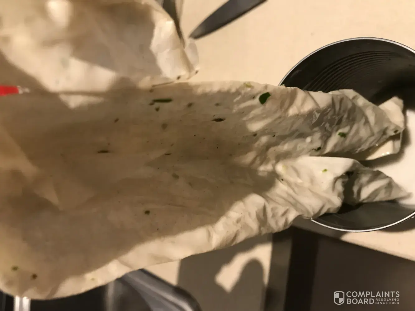 The paper in the tin seems to be dirty with little bits of green marks on it.