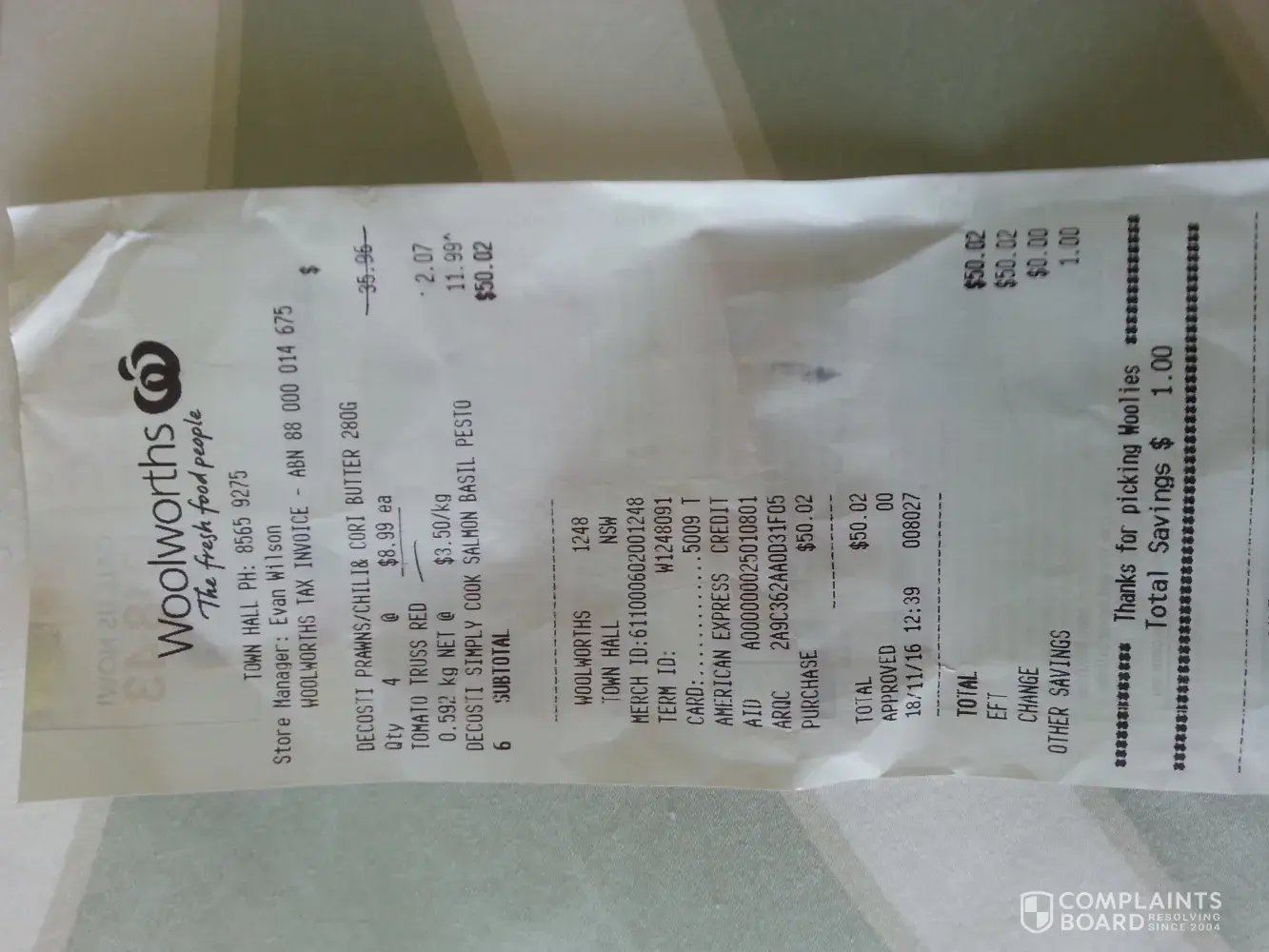 Being aware the turn around time for a refund is 3-5 business days I contacted Woolworths Online on the Friday 18/11/2016. I was assured by the caller who answered the call the refund would be credited to my account by Monday.