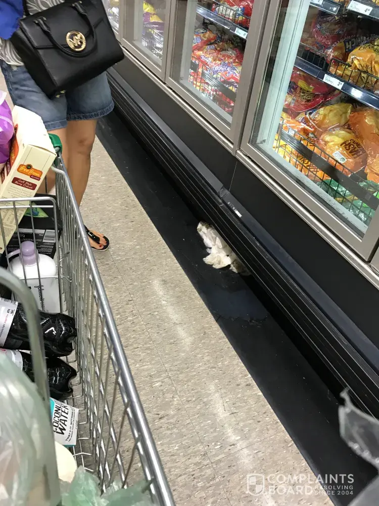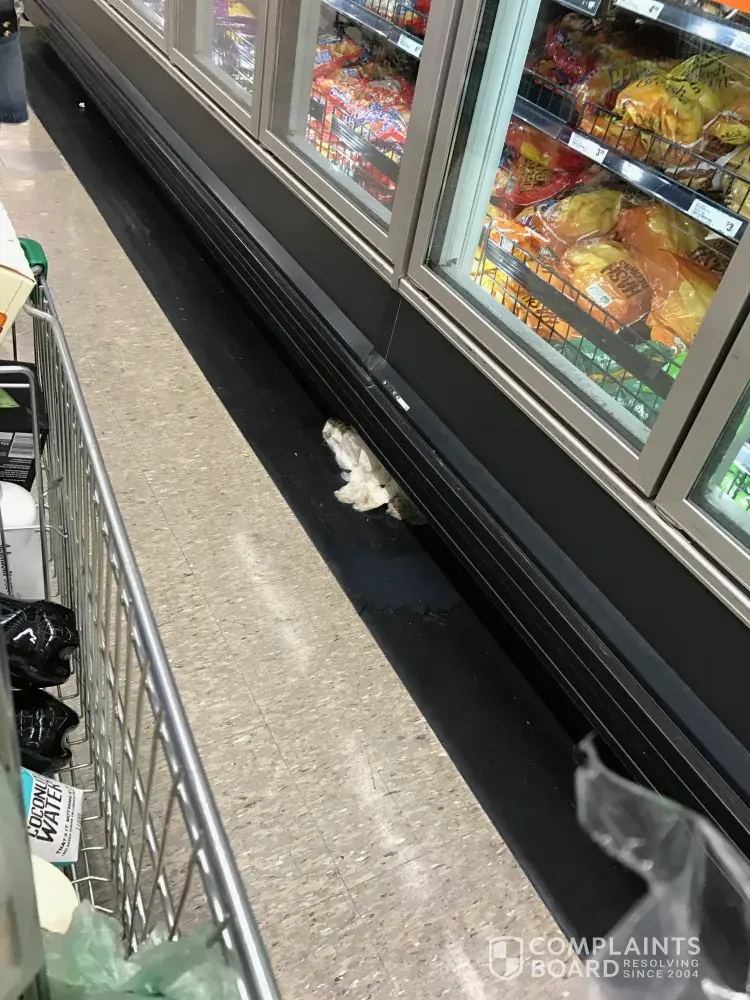 How can a store still operate under such poor conditions. Food all over the floor, filth underneath the frozen food sections, food spoils on doors... the list goes on.