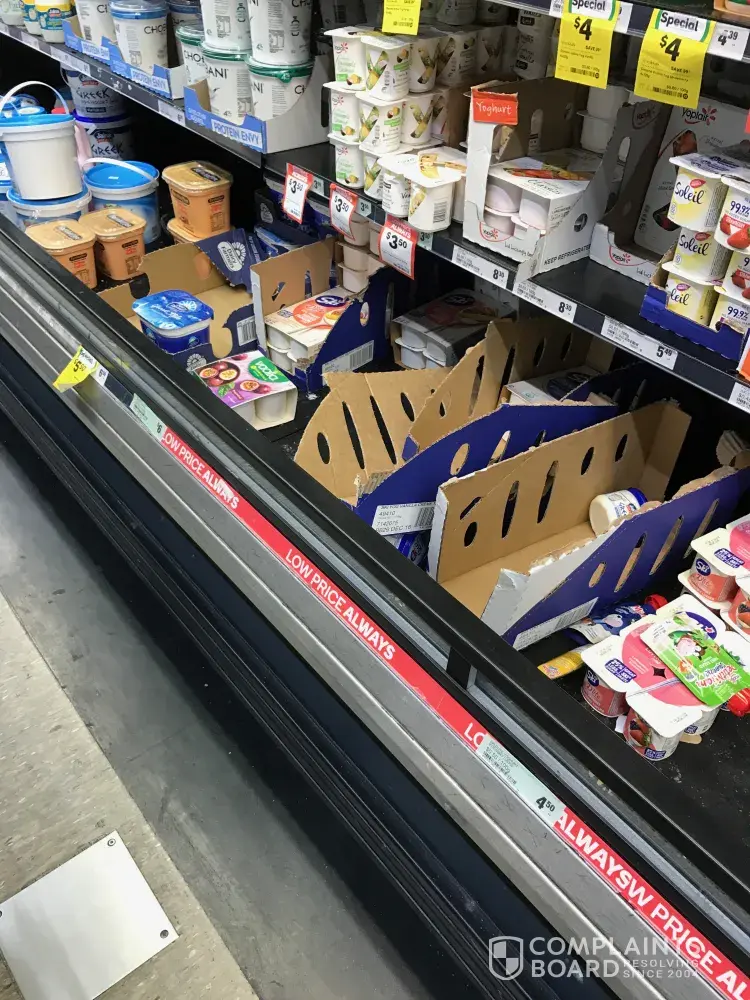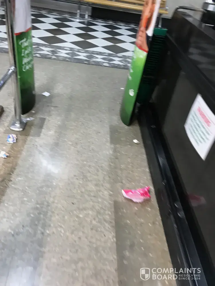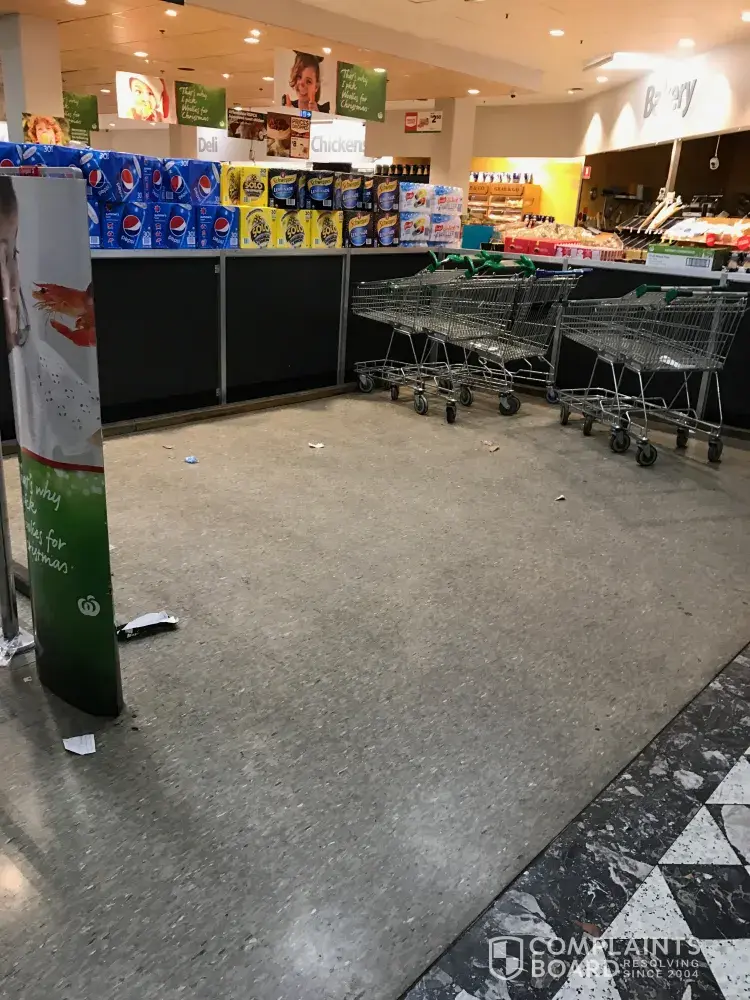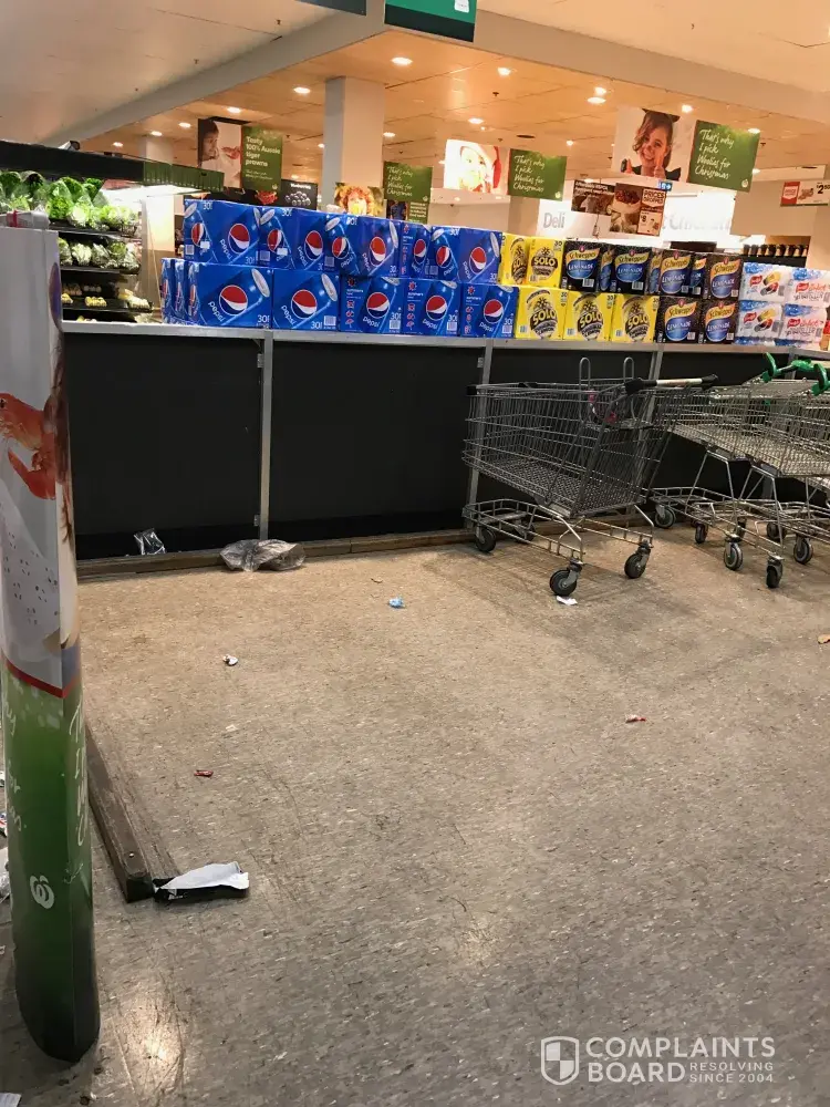 On top of this... hardly any trolleys available, products not on the shelf, empty boxes everywhere, products on floors and just a mess everywhere.