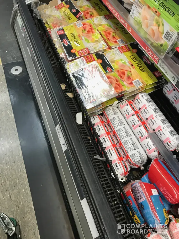 Purchased 4 no. Prawns $8.99 reduced to $4.50 and 1 no. Salmon $12.00 reduced to $6.00 today. Original bar code was covered and we finished up paying full price for all products.