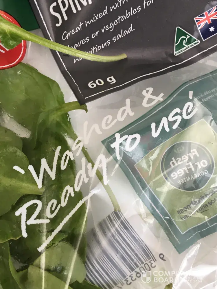 'washed and ready to use' spinach