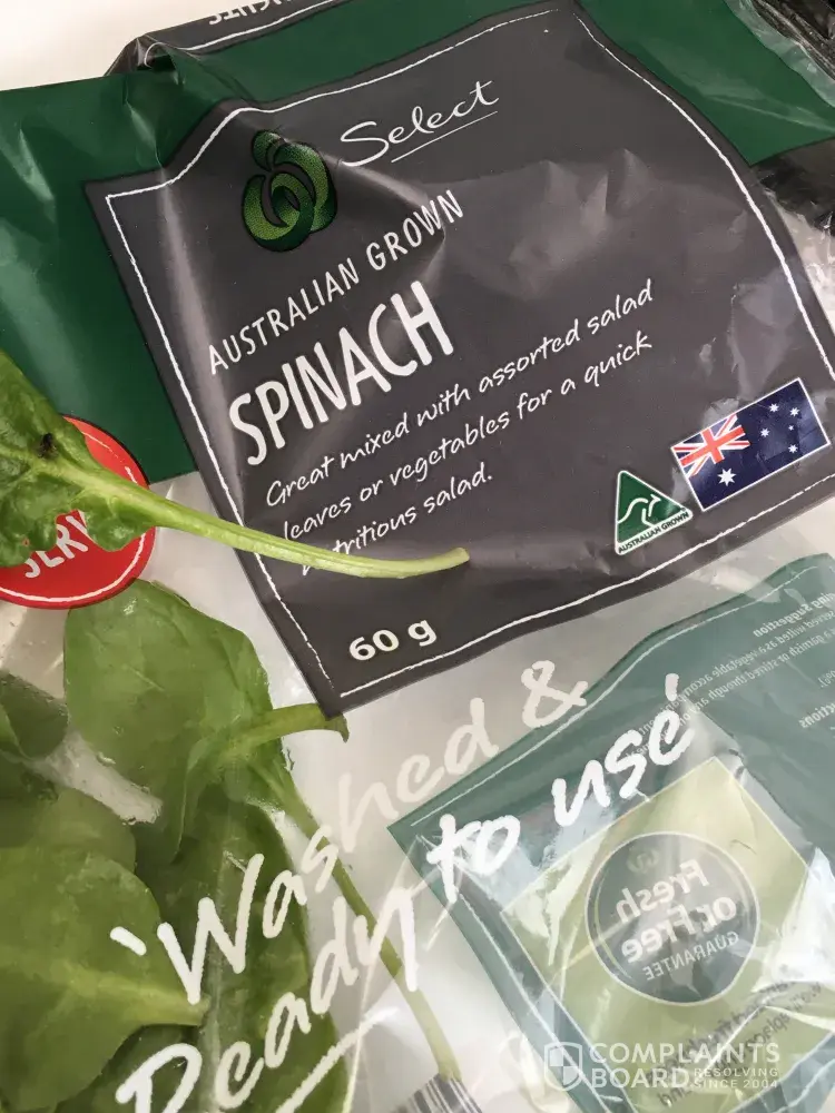 I bought a bag of single serve spinach at Woolworths Cronulla on 09/11 around 1630. Since the package said it is 'washed and ready to use', there would be no need to worry about insects and dirt. Although I saw a dead insect which disgusted me. Luckily I saw it and wasnt in my sandwich. Now I learnt not to trust fresh food packaging especially salads due to previous incidents with Woolworths.