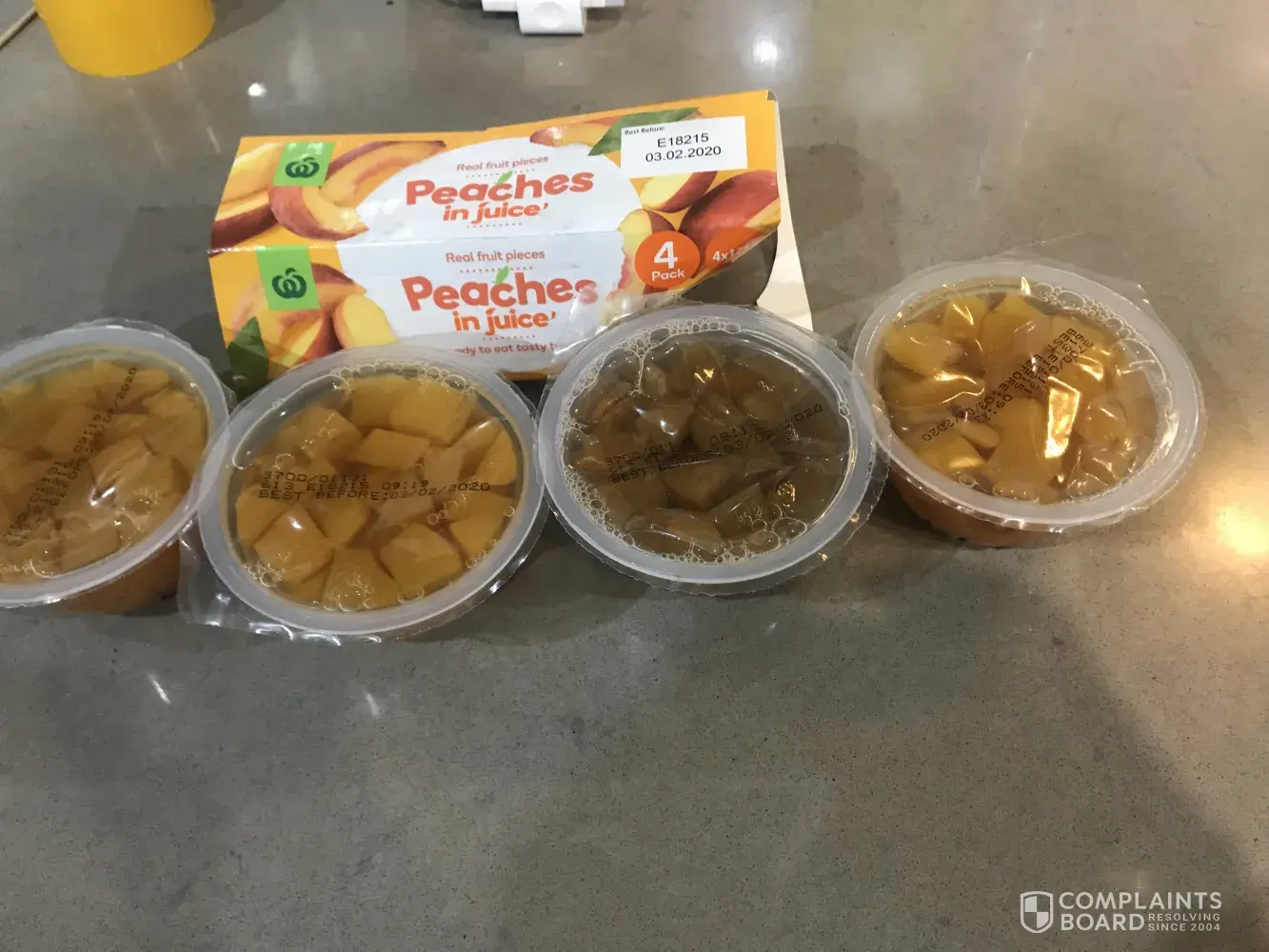 This afternoon I purchased a Woolworths brand - peaches in juice. I normally never have a problem with this product. However, this time I couldn't help noticing the colour difference and something I could not find any child or any pet of that matter.