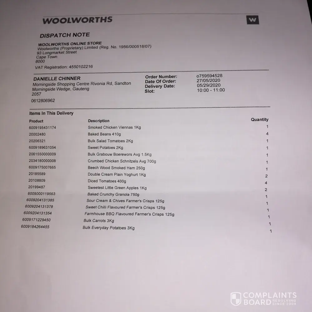 Woolworths South Africa Did not receive my delivery after purchasing online