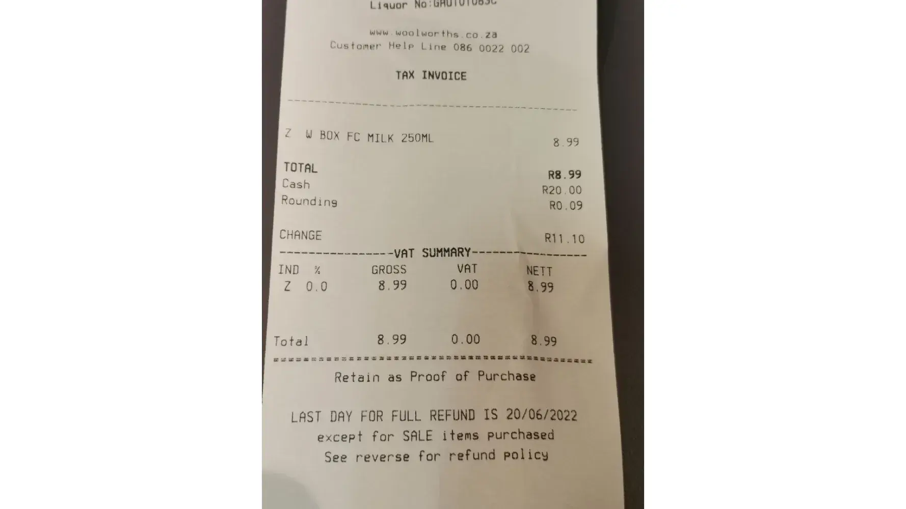 Bought in Port Elizabeth Greenacres on the 13th May 2022