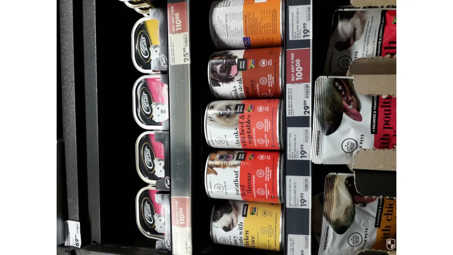 Recently dog food was on special which I always buy for my little dog Lucy. However, I feel the need to mention the danger in which shelves are being packed and a customer could hold you liable should they fall and be injured or damage their property. I personally am recovering from a total knee replacement so really battled with no help in sight. This is not the first time I have seen poorly packed shelves and obstructions at Sunridge Woolworths, hence my decision to make you aware by taking photographs, high lighting the problem.