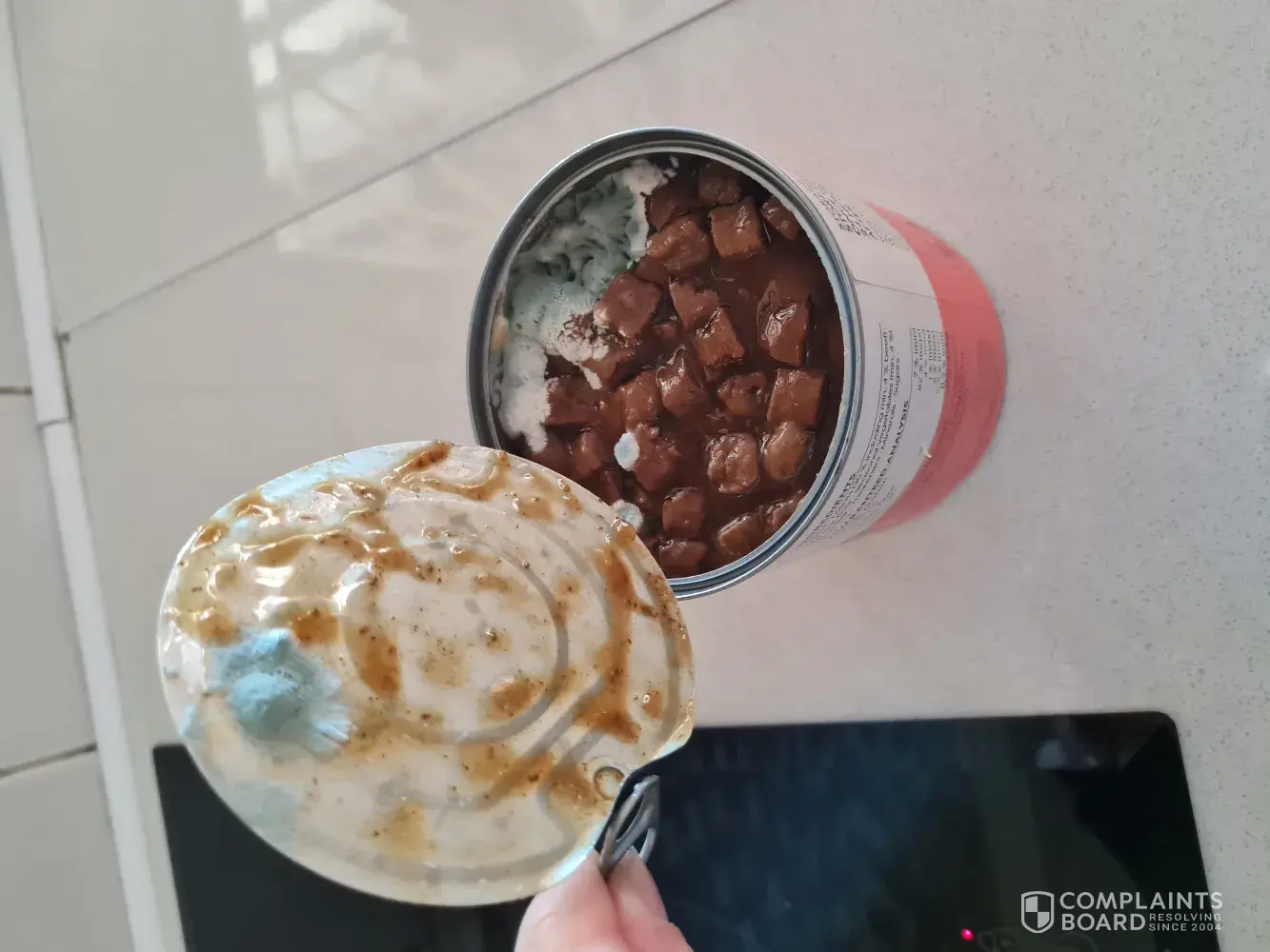 I recently started buying the posh pets dog food. I bought few cans last week to test it out on my dogs for a second week. This morning when I opened the can there was a large layer of mould growing on the dog food! Bought it last week, opened it this week, PD25/01/2021 and BB25/01/2023. Can't quite make out the batch number WWDC63 3.