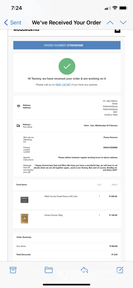 Woolworths South Africa Order not received