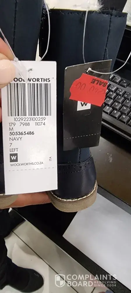 We live in Durbanville and Woolworths Tyger Valley never had the below boots in a size 11 in stock, of which I needed two pairs of the same size 11 for my twin daughters. We were informed that there were two pairs of size 11 at Table Bay Mall, but that no IBT could be done, as the boots were on sale. So my 70 year old father drove to Woolworths Table Bay Mall on my behalf, as I work during the day. On arrival the exact two pairs of size 11 boots were found and both were in sealed bags with an 11 size sticker on them (see below image). When my father returned back to Durbanville, we discovered that we had three size 11's and one size 12, which is bizarre as well as totally unacceptable as it is the responsibility of the cashier to CHECK the shoe size and not that of the customer. So off my father went back to Woolworths Table Bay Mall Customer Services to address the odd size 12 boot that would be of no use to us at all, as we need two size 11's. Customer service Woolworths Table Bay Mall checked if another store stocked the shoe and size, but no luck was received. Assuming there must be another odd pair of a size 11 and size 12 boot in the store, but no one bothered to cross check the store rooms or provide any further assistance in sourcing the correct boot to me. The one pair was refunded at the sale amount and my father made his way back to Durbanville with no luck. I'm left with twin girls with one set of 11 size boot and that's where the matter ends and Woolworths is quite happy with themselves at that. I will not accept that Woolworths made this disappointing mess and I require two size 11 boots.