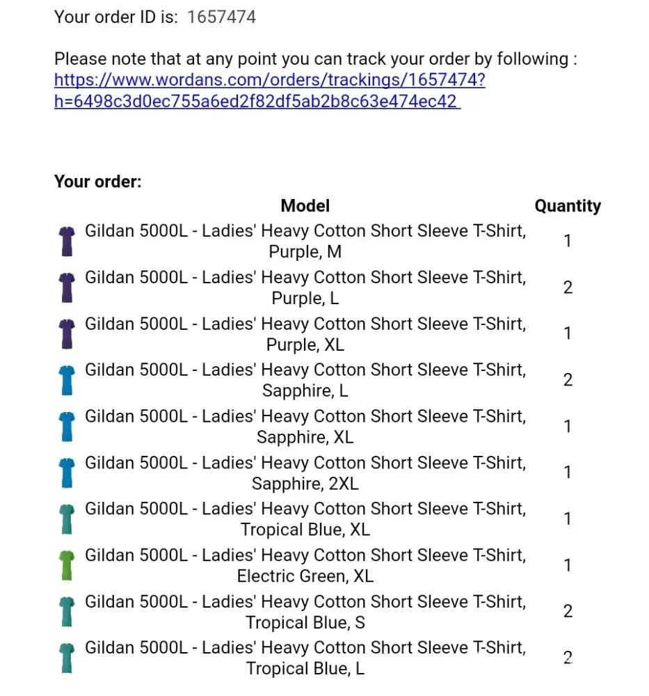 I placed an order on 1/14/18 order #1772827 and have yet to receive any information on the shipment or about anything of my order. I would like a refund because the shipment did not ship within he time frame that is posted and I have ordered shirts from another company and no longer need your services. I will never order from wordans again. And I will be sure to tell everyone not to go on this website because it's a scam. They don't have any proper customer service or a number to contact the sellers. They only provide emails and don't reach back to you in a proper time.