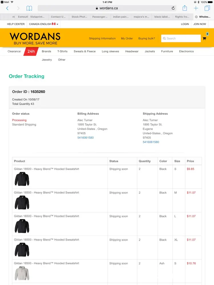 Do not order from wordans! I placed an order over a week ago. My money was definitely taken but no information on shipment at all. Their customer service numbers do not work, they don't respond to emails! This company is a fraud! The package tracking link doesn't work as well. They have a map saying how many days it takes for your order to ship which is 4 days for me. However, I still have no word on it being shipped. Everytime I check the site it says that it's still being processed. I need answers now!