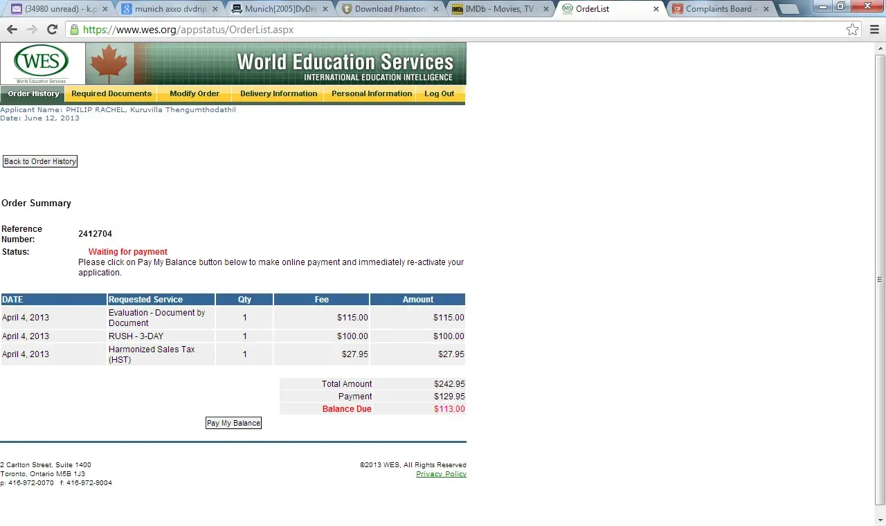 World Education Services [WES] bad communication, non receipt of evaluation on time
