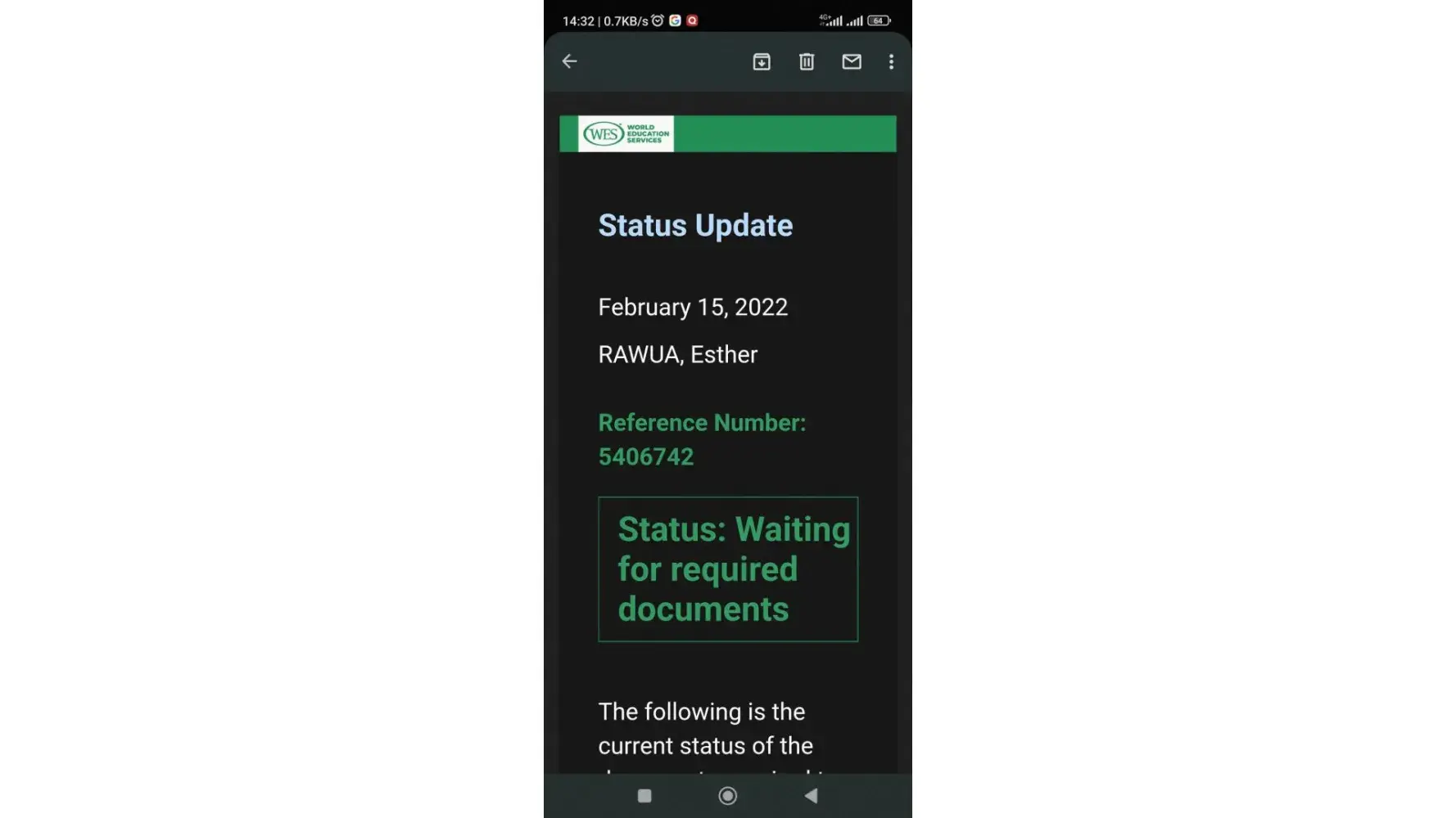 Please be reminded that regarding "Waiting for required documents" in the update, I already prepared the signed and sealed paper docs in a sealed envelope by MSRT which was forwarded directly to WES, the receipt of which was confirmed by WES customer service agents in a couple of times. The MSRT forwarded docs are the same as the " Waiting required documents" in your update still is talking about “ “Waiting for required documents as follow: