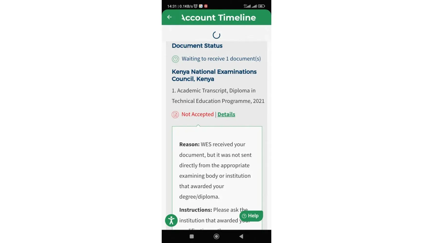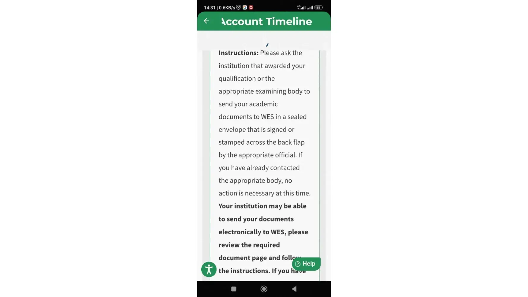 Please find the WES " Waiting required documents" ( what already forwarded and received in a sealed envelope by MSRT to WES) on my WES account page