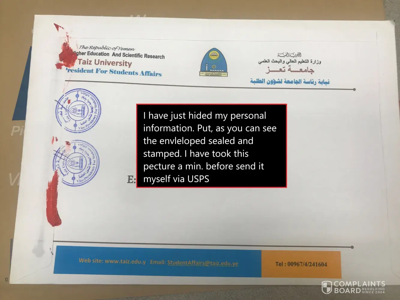 Which is not true as I am the one I received and double-check that everything is good, sealed and stamped envelope myself from my university (outside the USA). It's been more than 2 months of contacting and they're still providing me with the same note. They prevented me from enrolling and wasting the opportunity to register and complete my studies for the last term. I hope that I can file compliance against them