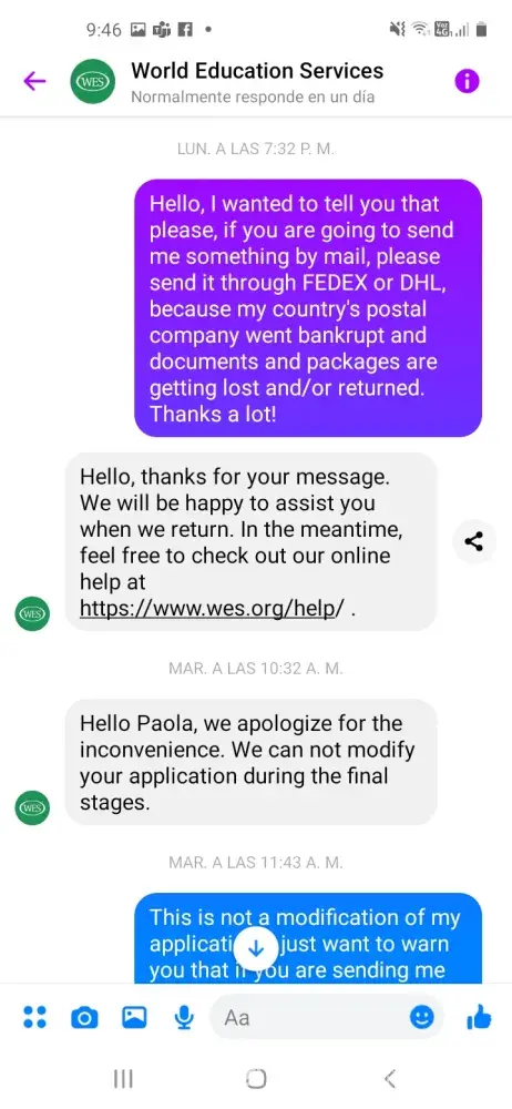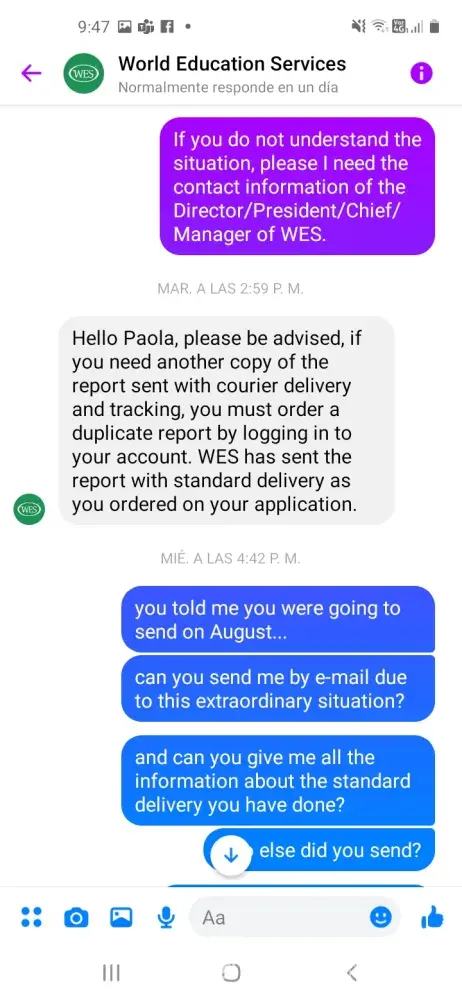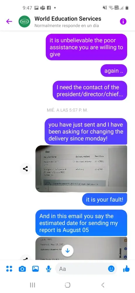 World Education Services [WES] I am complaining about my equivalency issued by world education services (wes)