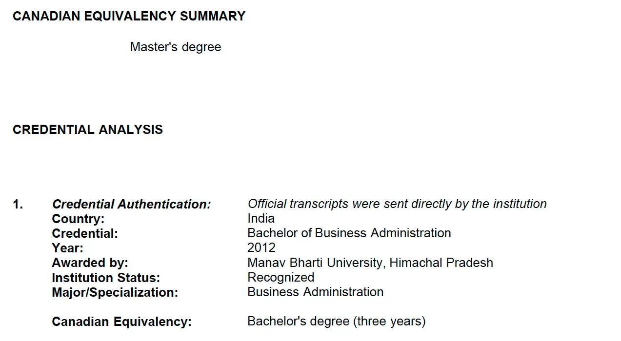 Please understand my situation. I would require an "additional report" for IRCC from WES Canada. I understand that my ECA report (Document-by-Document) does not have an expiration date. the official transcripts were sent directly by the institution (Manav Bharti University, Himachal Pradesh), and you all verified the information and later issued the attached ECA report, according to the WES Canada. WES examined the data and provided the ECA report [edited] on June 27, 2016. The Canadian Equivalency Summary for my Master's degree